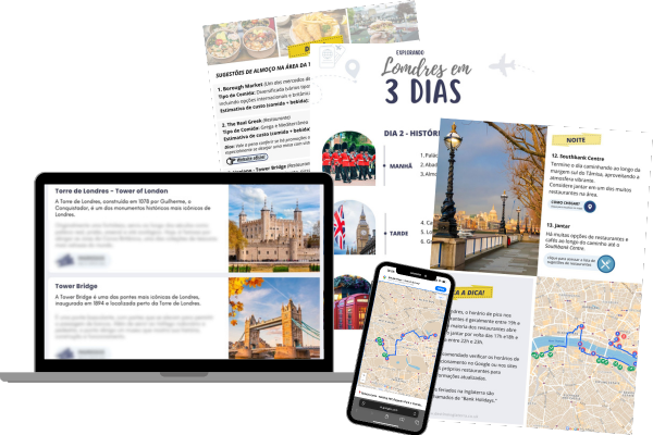 Receba um roteiro pronto que otimiza seu tempo, ajuda a economizar dinheiro e te mostra como aproveitar o melhor de Londres, sem precisar de semanas de pesquisa e planejamento
